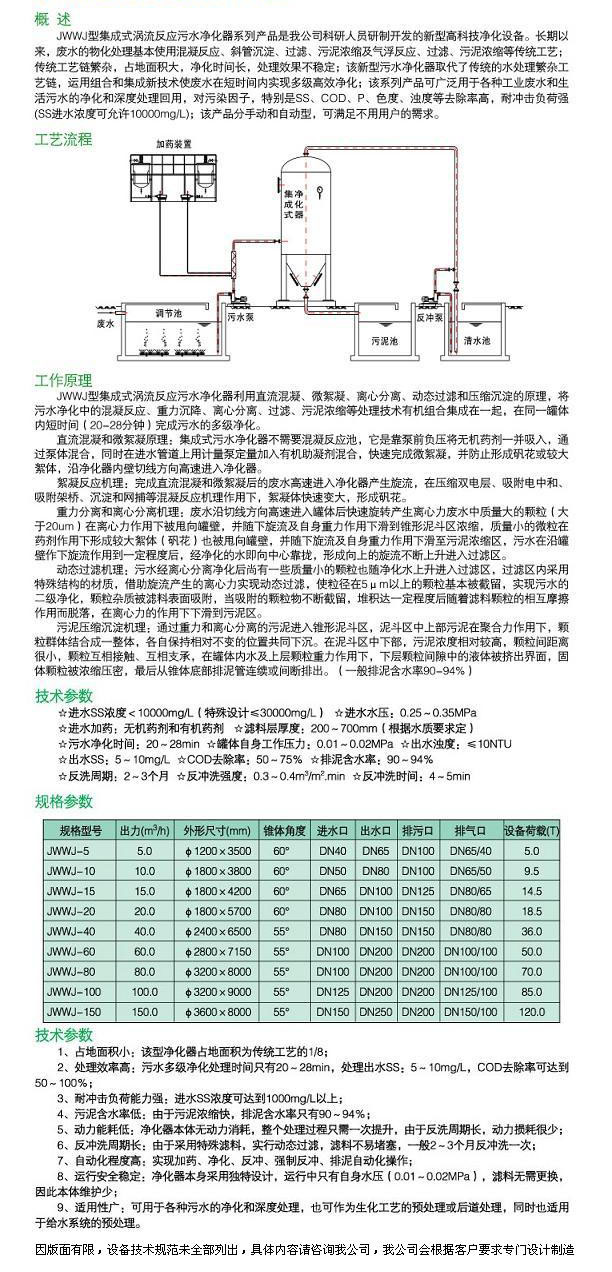 JWWJ型集成式渦流反應(yīng)污水凈化器