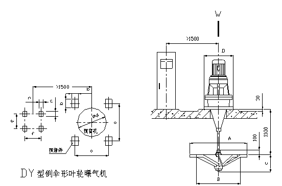 采用立式擺線針輪減速機,通過連軸器與浸沒于水中的倒傘形葉輪直接相聯(lián),并且驅(qū)動葉輪旋轉(zhuǎn)。在葉輪的提水、輸水的作用下,使池內(nèi)的液體劇烈攪動,不斷產(chǎn)生水躍和循環(huán)流動,并且在葉輪片后側(cè)形成負壓吸入空氣,實現(xiàn)曝氣池內(nèi)的污水充氧效果。該裝置常以一池單機或多機布置于氧化溝及大小不同類型的污水生化處理曝氣池。主要用于Carrousel型氧化溝,安裝于氧化溝兩端。